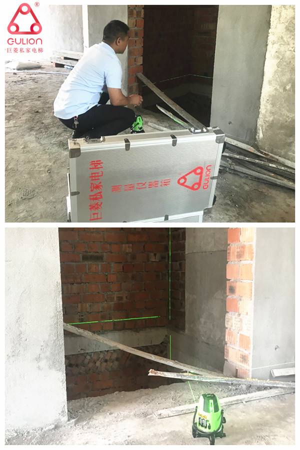 巨菱技術利用水平激光測試儀 精確勘測陳總上海四層別墅電梯井道尺寸