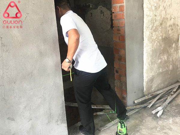 結合人工的卷尺測量 保證測量別墅電梯 安裝尺寸精確到在毫米之內