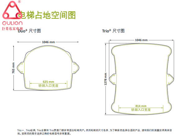 客戶選擇巨菱Trio+系列別墅電梯 開孔尺寸圖