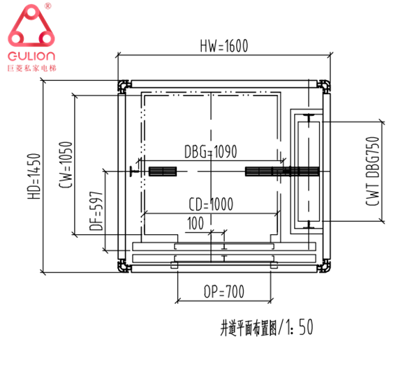 井道尺寸:1600*1450mm(寬*深)