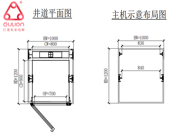 電梯井道尺寸:1000*1200mm(寬*深)