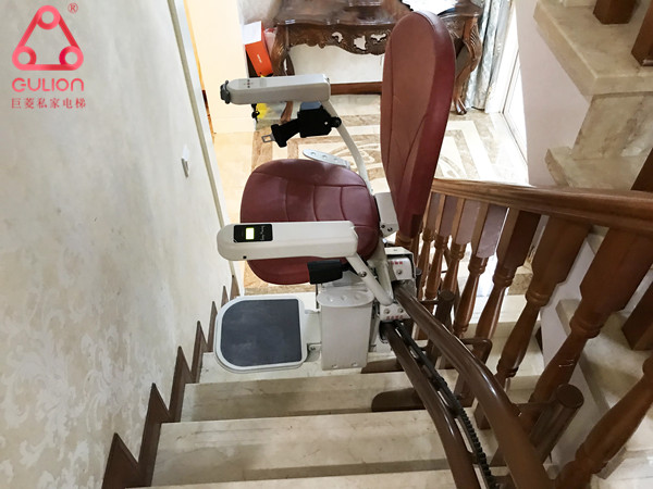 模型成型后,我們會下單到廠,會嚴格按照模型圖紙進行生產。座椅電梯導軌和座椅的顏色,我們會根據業主家整體的家裝風格來選定。業主也可以按照自己喜歡的風格來定制。浙江桐廬的業主樓道扶手是復古紅色系,偏中式風格。因此我們對應選擇褐紅色導軌和酒紅色真皮座椅,使整體的風格看上去非常的協調、美觀。安裝實景效果圖如下: