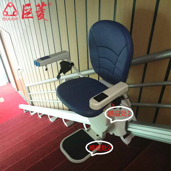 當在運行過程中碰到障礙物或者老人攜帶拐杖滑落時,裝設在腳踏板邊緣及臺架底部的感應器便能立即反應,將老年座椅電梯安全穩定的停止。當障礙物清除之后,座椅電梯立馬恢復正常的運行狀態。