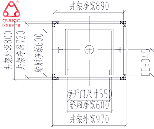 以巨菱私家電梯客戶預留970mm*800mm非標準小井道為例,這樣的井道安裝一部小型家用電梯尺寸應該是多大?Gulion巨菱GS600系列·最小樓梯中間970mm×800mm,可做電梯600mm×600mm。常規尺寸一般都在1200mm*1200mm,電梯內部轎廂尺寸可做:800*800mm/800*900mm。具體安裝尺寸要根據家用電梯公司專業技術人員現場勘測,詳細的圖紙來定,這樣的尺寸準確度更高。