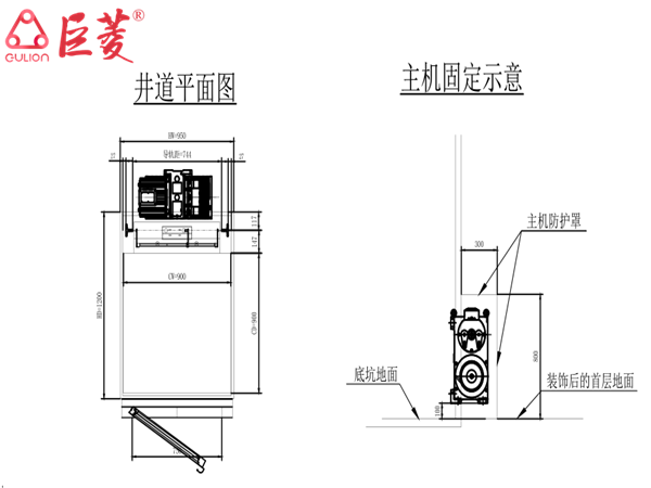 目前生產電梯產品種類繁多,而構成各類私家別墅電梯的主要零部件的規格參數可能不同。但它的名稱、所起的作用和安裝的位置則是基本相同的。下面由Gulion巨菱電梯有機電零部件在電梯機房、井道、層面的裝配關系和位置繪制分布示意圖如下: